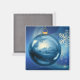 Graphisme avec une balle bleue de noël, décoré avec un paysage hivernal