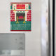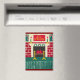 L'image imprimée sur aimant est d'une photo d'une tapisserie originale au crochet de création conçue à la main et Copyright © par le designer publié Delores Chamblin. L'image de l'unique cheminée artisanale en brique rouge or vert et blanc mur de Noël suspendu avec des franges de fil est reproduite sur l'aimant.