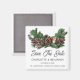 Noël d'hiver Enregistrer la date Mariage magnet caractéristiques pinèdes, feuilles de pin, arrangement de baies sèches et modèle de texte.Un design parfait pour le thème mariage d'hiver ou de Noël.S'il vous plaît cliquer sur le bouton personnalisé pour le customiser avec votre texte ou nom.Kindly visitez mon magasin "loveyouart" pour d'autres designs ou similaires. .