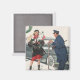 Illustration vintage Joyeuse image de fête de Noël montrant une mère portant des cadeaux de Noël à sa voiture garée. Un gentil policier qui fait respecter la loi nourrit son parcomètre pendant qu'il neige pendant la saison hivernale. Un design kitsch rétro les années 50 amusant !