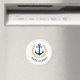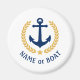 Un aimant rond personnalisé avec votre nom de bateau, votre nom de famille ou tout autre texte souhaité, au besoin. Doté d'une ancre nautique conçue sur mesure, de feuilles de laurier de style or et d'emblème d'étoile sur le blanc ou de régler facilement la couleur primaire pour correspondre à votre thème actuel.