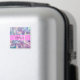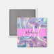 Nom monogramme irisé holographique rose, violet et aqua et aimant initial. Votre nom personnalisé et votre monogramme sont écrits dans un élégant script écrit à la main avec un arrière - plan rose. Un cadeau d'anniversaire ou de Noël parfait !