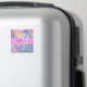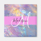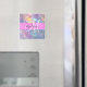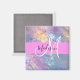 Nom monogramme irisé holographique rose, pêche et aqua et aimant initial. Votre nom personnalisé et votre monogramme sont écrits dans un élégant script écrit à la main avec un arrière - plan rose. Un cadeau d'anniversaire ou de Noël parfait !