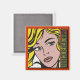 Aimant carré avec l'image d'une Pop Art de Roy Lichtenstein en 1965 d'une femme blonde qui avait l'air inquiète (larme ajoutée). Elle plaide : "Ne m’oubliez pas." Décor vert et orange des années 80 vintage. Les mélomanes des années 80 sauront d'où vient le sentiment et la décoration. Bordure orange. Voir l'ensemble de la collection d'aimants Tubular 80s dans les TOUCHES SPÉCIALES | Section Favoris.