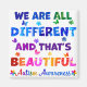 Citation inspirante de "Nous sommes tous différents et c'est magnifique" avec des puzzles d'autisme uniques, et des papillons colorés volant sur l'arrière - plan pour soutenir et défendre la Sensibilisation sur l'autisme.