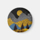 Paysage montagnard Abstrait dans des tons audacieux d'or, noir et bleu avec un lever de lune et des oiseaux.
