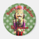 Une image réaliste d'un Casse-Noix traditionnel est imprimée sur un arrière - plan vert avec un motif fabuleux sur un mignon aimant de Noël. Il y a un modèle pour votre nom personnalisé en lettres rouges et vous pouvez personnaliser l'accueil. Un excellent cadeau pour tous les amateurs de ballet ou de danse.