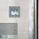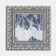 Joli aimant carré, avec la peinture acrylique de Maria Egilsson intitulée Valse des flocons de neige, mis dans un cadre découpé en argent.