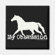 Es-tu obsédée par les chevaux ou les poneys ? Si c'est le cas, nourrissez votre addicte aux chevaux avec ce design équestre est parfait pour vous. "Mon Obsession" avec la silhouette d'un cheval trot. Fait un grand cadeau pour tout amateur de cheval qui monte dressage, cavalier, équitation, sauteurs, soirée ou équitation. Cherchez dans mon magasin d'autres cadeaux de cheval assortis pour la cowgirl ou cowboy dans votre vie.