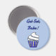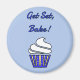 Pour la joie de la cuisson. L'image est un cupcake avec le slogan "Get Set, Bake" en noir script ci-dessus. La coque de cupcake est dans les tons bleu et crème décorée d'étoiles, et les tourbillons de glace sont d'un blanc sucré. Un arrière - plan bleu clair complète le design.