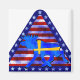 Un graphisme Suédois-Américain représentant la Route Suédoise Signal indiquant "Attention à Moose qui traverse la route", avec les couleurs du drapeau Suédois et Américain !