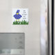 Un design amusant pour les amateurs d'oiseaux. Un joli oiseau bleu avec un grand bec et des ailes et plumes bleues uniques. Grande herbe verte. Un grand dicton "nous aimons nourrir les oiseaux"...