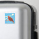 Un mignon aimant cardinal. Petit oiseau debout sur une branche d'arbre en fleurs sous le soleil rayonne sur un arrière - plan bleu clair. Le texte peut être personnalisé.