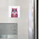Oiseau de Chouette coloré Design d'oeuvres d'art. Chouette colorée aux yeux jaunes, debout dans la branche de la forêt. Cette peinture à l'huile est un cadeau unique pour tous les amateurs de chouette.