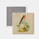 Un joli tableau vintage d'un oiseau assis sur un panier de fleurs est présenté sur cet aimant carré. Un joli design vintage, utilisez cet aimant pour le décor Printemps et Pâques ou pour offrir en cadeau!