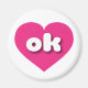 Cet aimant est doté d'un coeur rose chaud vibrant contenant les lettres coques inférieures blanches, arrondies et audacieuses ok, une version ludique de l'abréviation pour Oklahoma, l'état le plus tôt.