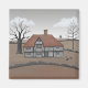 Colourful artwork of an old timber-framed farmhouse in the English countryside, with an old windmill in the background, and some crows who have come to visit. Perfect for anyone who loves folk art.