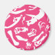 Les os de dinosaures rose et blanc répétant le motif! Les dinosaures présentés dans cette conception comprennent : Tyrannosaurus Rex, Allosaurus, Parasaurolophus, Tricératops, Brachiosaurus, Spinosaurus et Velociraptor.