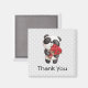 Un aimant de remerciement avec un adorable dessin aquarelle. Un adorable ours de panda noir et blanc portant un bouquet de roses. Gris avec arrière - plan pois blanc.