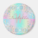 Aimant Paillet holographique Licorne - Un aimant coloré scintillant tendance avec un mélange de turquoise, rose et mauve et des paillettes jaune clair. Vous pouvez personnaliser cet aimant en ajoutant votre nom et vos initiales.