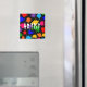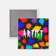 Aimant à éclaboussure de peinture multicolore. Le texte et la couleur arrière - plan peuvent être customisés.