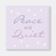 Vous voulez un peu de calme ? Faites-le savoir avec ce slogan tranquille "calme et tranquillité" dans des teintes douces de lilas et de mauve sur un arrière - plan de lavande pâle décoré d'un délicat motif de fleurs blanches.