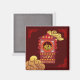 Conception de palanquins chinois stylisés portant une coupe de papier doré d'un Ox avec son idéogramme + salutation chinoise + grand 2021 + nuages dorés auspicieux. Conception sur aimant de réfrigérateur carré avec arrière - plan rouge foncé. Vous pouvez facilement modifier la couleur de l'arrière - plan en cliquant sur le bouton personnaliser. Carte de voeux, carte postale de vacances, invitations, produits artisanaux, matériel de fête et plus encore... Parfait pour le Nouvel An Chinois de l'Ox 2021.