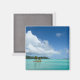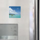 Aimant photo souvenir d'une petite île avec un palmier dans le lagon turquoise de l'île tropicale Bora Bora près de Tahiti en Polynésie Française.