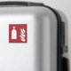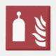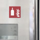 Bouteille avec poignée à bouton sur le dessus et icône flamme sur arrière - plan rouge.