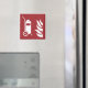 Extincteur à roues et icône de flamme sur arrière - plan rouge.