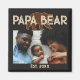 Papa Bear Father Year Established Photo Black Magnet. Celebrate a special father figure with this "Papa Bear" photo magnet. This design features a rustic bear silhouette and bold vintage-style typography. The easy-to-use photo template allows you to showcase a favorite family memory, making it a thoughtful keepsake for Father's Day, first-time dads, or birthday gifts. Add the year you became a dad or grandpa, and add more years for more children. Photo can be adjusted in the Design Editor tool using "crop". Contact the designer with any customization questions.