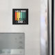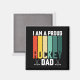 L'aimant Proud Hockey Papa présente plusieurs couleurs vert, blanc cassé, jaune et rouille orange sur un arrière - plan noir avec le texte blanc qui dit Je suis un Proud Hockey Papa!