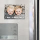 Aimant avec votre photo personnalisée et texte en gras "Papa, on t'aime" flanqué par les coeurs comme une couverture blanche.