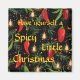 Des piments de piment rouge et vert festifs avec des sprigs à feuillage persistant et des lumières de Noël brillantes composent le design, avec le texte "Ayez-vous un petit Noël épicé." Montrez un esprit de fiesta avec votre décor de vacances, et Feliz Navidad !