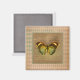 Un papillon vert et or enchanté se dresse au centre d'un panneau d'éphémères brun et or avec des couleurs sournoises arrière - plan arlequin. Un mélange qui s'accorde à des thèmes de décoration vintages et modernes...