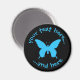 Papillon ulysse bleu. Icône vectorielle avec couleur personnalisable. Couleur arrière - plan personnalisée. Deux champs de texte personnalisés sur cercle.