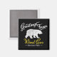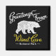 Parc national de Wind Cave design vintage avec un ours de style tableau noir avec texte rétro en blanc et jaune sur noir.