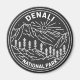 Design de monoline Denali. Le parc a un terrain de toundra, de forêt d'épinettes et de glaciers, le parc abrite la faune, y compris le grizzli, le loup, l'orignal, le caribou et le mouton de Dall.