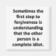 Rendez-vous à votre côté sombre. Découvrez ce sarcastique et spirituel "Parfois, la première étape du pardon est de comprendre l'autre personne est un Idiot complet" conception sur vêtements, tasses, mousepades, boutons et autres cadeaux uniques. Pour l'amoureux du sarcasme en chacun de nous.