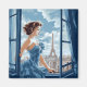 Cet aimant est présenté avec une jolie dame dans une impression d'art parisien.