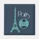 Cet art présente un design de la Tour Eiffel en turquoise sur un arrière - plan bleu foncé.
