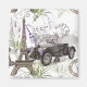Beautiful vintage art inspecred by Paris and featuring a retro car, the Eiffel Tower, vintage stamps, retro phone and lavender, tout en two tones. Elegant retro collage.