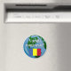 Aimant Parles-tu roumain ? en roumain. Drapeau et globe