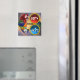 Dirty - Nettoyer l'aimant du lave-vaisselle avec des pierres précieuses 3D. Vibrant, unique et artistique macaws tropicaux 3D avec des plumes colorées en rouge, bleu, vert, orange, jaune, blanc dans la nature sauvage sous le ciel de coucher de soleil rose, créé par Bulgan Lumini (c).