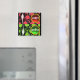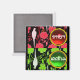 AIMANT PARROTS ART DÉCO, FLEURS VERTES ROUGES JOLIMENT PR