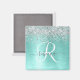Personnalisez facilement ce design d'aimant chic branché avec une jolie parties scintillant brillante en argent sur un arrière - plan métallique brossé turquoise.