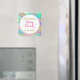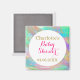 Aimant de Baby shower coloré et personnalisé avec un arrière - plan couleur arc-en-ciel blanc et unicorne, parties scintillant dorée scintille les confettis, et élégante écriture dorée et rose chaud. Vous pouvez facilement ajouter le nom de votre choix et changer la couleur et la police du nom en utilisant l'option personnaliser !