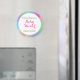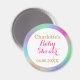 Aimant de Baby shower coloré et personnalisé avec un arrière - plan couleur arc-en-ciel blanc et unicorne, parties scintillant dorée scintille les confettis, et élégante écriture dorée et rose chaud. Vous pouvez facilement ajouter le nom de votre choix et changer la couleur et la police du nom en utilisant l'option personnaliser !