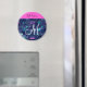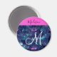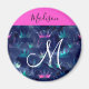 Fille et glamour rose chaud, violet, aqua turquoise, vert et bleu parties scintillant scintille couronnes/ tiaras mermaid princess nom monogramme et aimant initial. Votre nom personnalisé est écrit en noir avec un arrière - plan rose chaud, et votre monogramme personnalisé est écrit en blanc avec un élégant script écrit à la main. Un cadeau d'anniversaire ou de Noël parfait !