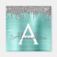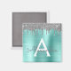 Argent et Turquoise Aqua Blue Faux Foil Métallique Parties scintillant étincelante en métal brossé Monogramme Nom et Aimant de partie initial. Cela rend le cadeau parfait pour 16 ans, mariage, douche nuptiale, anniversaire, baby shower ou bachelorette pour quelqu'un qui aime le luxe glam et les styles chic.